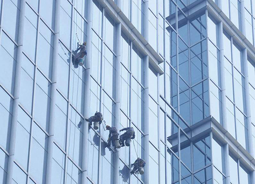 蘇州蜘蛛人保潔所使用的清潔劑為呈中性偏堿性的清潔劑,經(jīng)稀釋后PH值為8-10之間,不會對外墻瓷磚、玻璃等材料造成傷害。